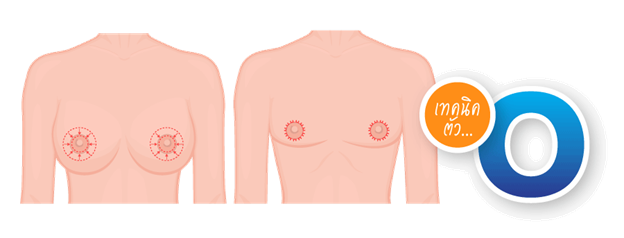 1) Đối với ngực cúp A, phẫu thuật vết mổ nửa quầng ngực .